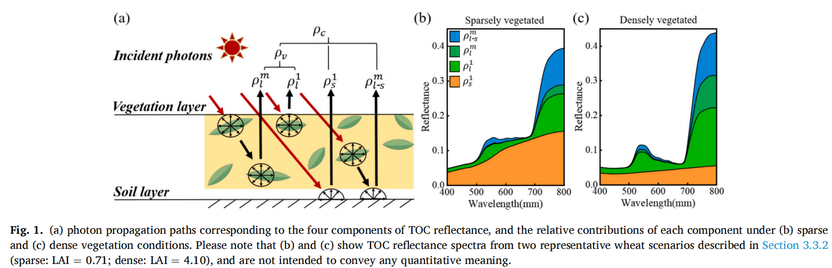 叶绿素含量是表征植被光合性能与生理状态的核心指标,但从冠顶反射率(TOC)准确提取叶片叶绿素含量受土壤背景和树冠结构干扰,导致传统叶绿素光谱指数在不同物种、环境条件下稳定性不足。针对这一关键瓶颈,研究团队基于植被和土壤光谱特征与冠层辐射传输机理,通过严谨的理论推导和广泛的实证验证,创新提出干扰抑制叶绿素指数 IMCI (Interference Mitigation Chlorophyll Index)。